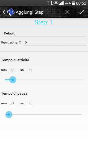 You can use the default round of 3 minutes on and 1 minute off, or personalize the rounds of your workout as you want.
