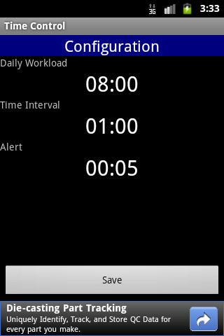 Time Control is a software to help you in control of their working day, allowing the record of their working hours (start and end) and range (start and end).