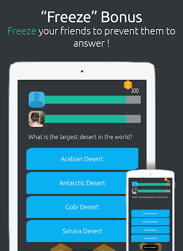 - FREEZE : your opponent is frozen. He can't answer for 5 seconds !