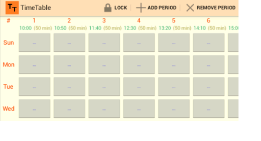 1) TimeTable creates 7 Periods with start time 10AM with Period Length 45 Minutes for week days starting from Monday to Saturday.