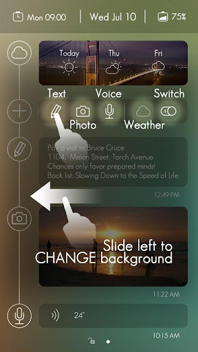 ☆Tap the "+" icon to add something on your screen: Text, Photo or Voices.