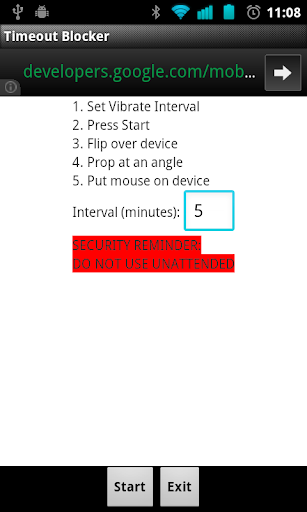 Setting a vibration interval will cause the vibration of your device to turn on for a brief period (for example, every 5 minutes it will buzz once). If your mouse is sensitive enough (usually better responsiveness on the back side of most devices instead of the glass), then the vibration will cause your mouse to move slightly, preventing the screensaver of your computer from activating.