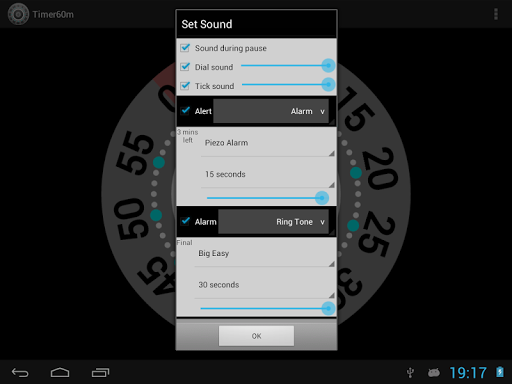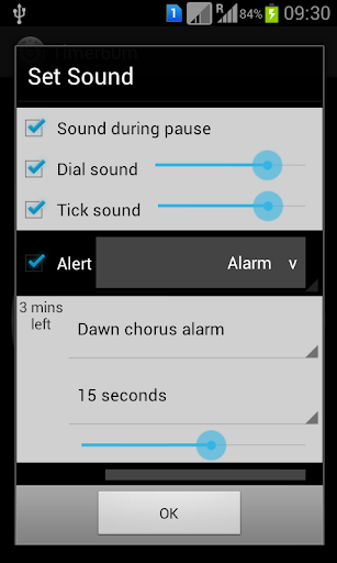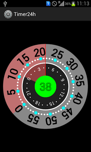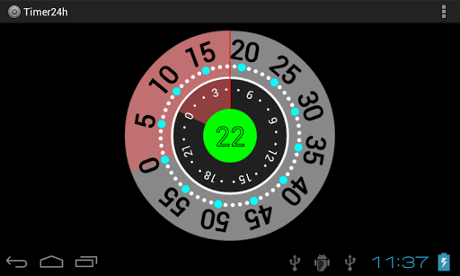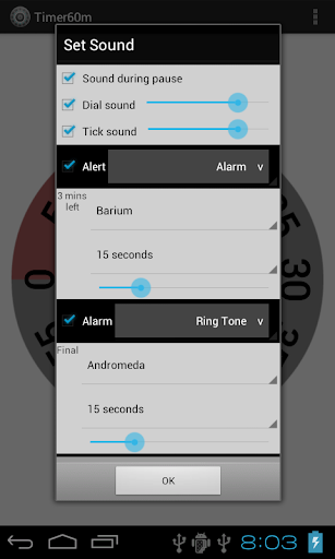During the timer is running, you may touch the screen and hold to see the remaining time. At 3 minutes before the ending time, the alert sound will sound and show the blinking remaining time bar and at the ending time, the alarm sound will sound and show the blinking passed time bar. You may touch the blinking bar to stop the sound.
