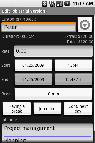 Timesheet tracks the times you spend on your various jobs. Track "live" or manually. See total duration, costs per customer/project.CSVExport.