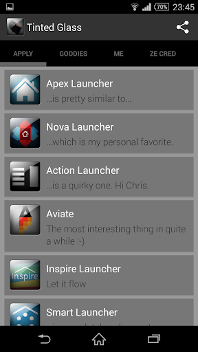 Supported launchers include Nova, Apex, Action Launcher, Inspire, Aviate and ADW and to some extent Smart Launcher.