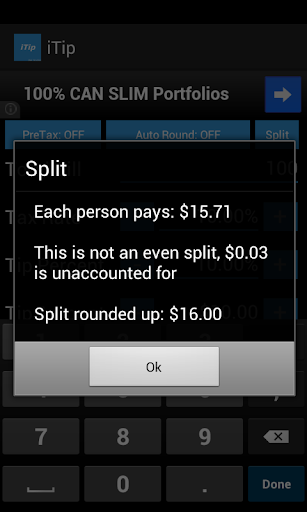 This tip calculator also includes 2 fast access tip calculator setting modifications at the top of the screen
