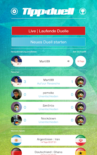 Tippe mit Tippduell alle 64 Spiele der WM in Brasilien und fordere deine Freunde im spannenden Duellmodus heraus. Kreire deinen eigenen Avatar und lasse dich vom Fußballfieber anstecken.