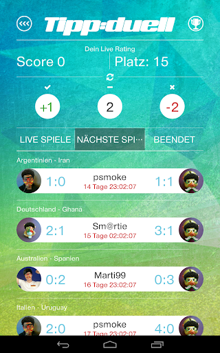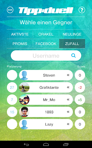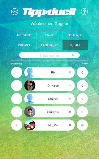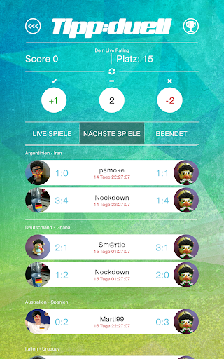 Tippe gegen deine Freunde oder fordere über die umfangreiche Gegnerauswahl Tipper, Zufallsgegner aus der ganzen Welt oder sogar Promis heraus. Tippe dich an die Spitze des World Rankings und beweise dich als Fußball-Experte.