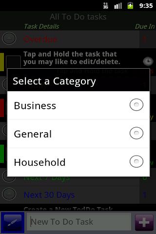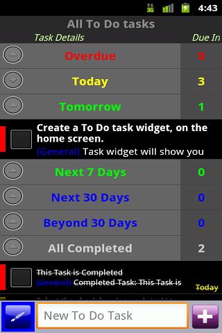 Best To Do Tasks app that provides excellent features to manage to do tasks, such as home screen widgets, task count down days, Reminder facility, task categories and also grouping on tasks based on due date.