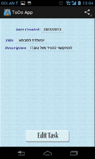 (*) Share your task with your friends through Facebook, Whatsapp, SMS and more...