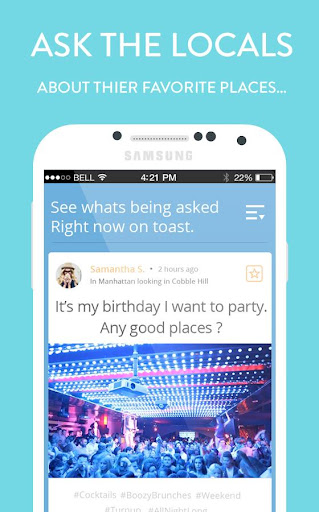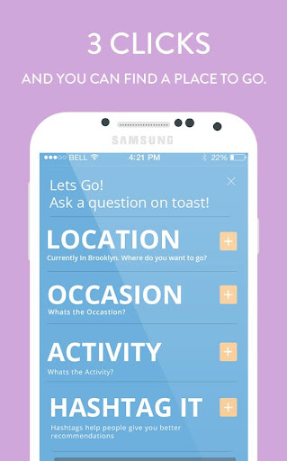 Toast is a fun and fast way to find places to go for any reason! Ask people around you about their favorite places to meet new people, break a sweat, or have a foodventure! Help people who have questions about your neighborhood. Who knows you’ll even meet some cool people in real life!