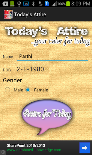 Today's Attire is a simple app which will just help you in selecting the dress that you would wear today.