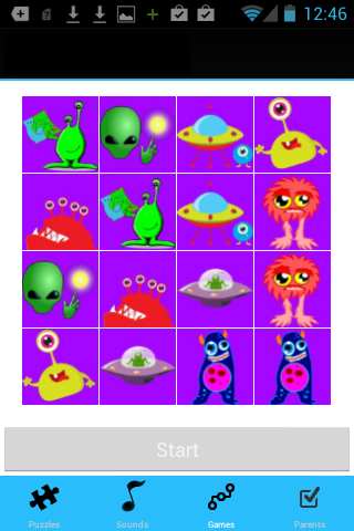 Another landing spot for some sonic fun is the Space Memory Games! Three different matching games are included in the robot for kids activity app including Robot Match, Spaceship Match, and Aliens Match. Playing the robot game for toddlers memory games is zillions of fun and playing the numbering games for kids activity app match games will also promote:
