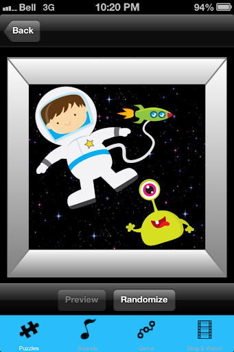 2. Let them tap randomize, slide a few pieces and then tap the back button. This is a simple way to introduce them to using the numbers for kids games space puzzles, develop fine motor skills, and it’s very entertaining for them to see the puzzles scramble.