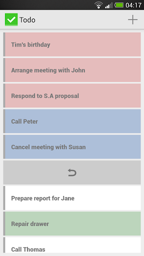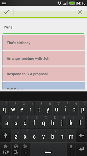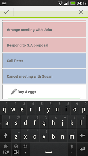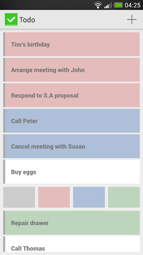 Simply add new task, color it with 4 available colors and when you have the task done, remove it from your list.