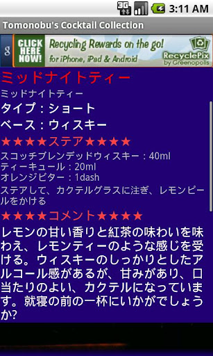 智信が創作したカクテルのレシピを紹介するアプリケーションです。
