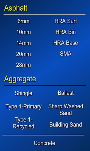 This app easily and conveniently converts M3 to Metric Tons for easy ordering of Asphalt and Aggregates to site. Choose your material and input your measurements and let the calculator do the work for you as all the formulas are built in.