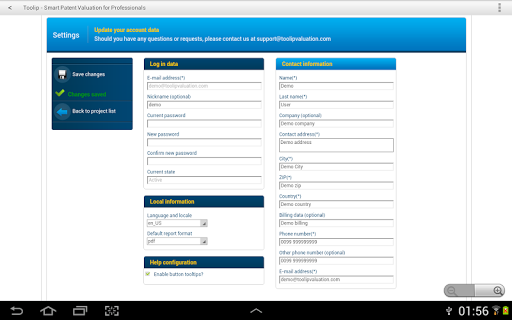 This application is a front-end of the web application https://app.toolipvaluation.com. It is designed for Android tablet devices.