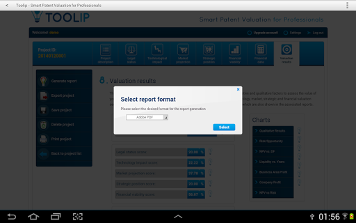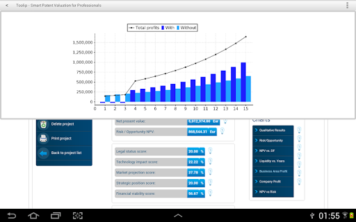 Toolip provides you with the most powerful patent valuation tool for tablets. The application allows users to know the financial value of their patents and to generate highly detailed valuation reports. It is specially designed for patent portfolio managers, patent attorneys, licensing and transfer offices and technological companies all over the world.