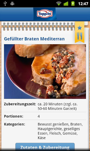 Toppits® gehört in jede Küche, und auf das Android Smartphone/Tablet einer klugen Hausfrau und Küchenfans gehört ab sofort auch das Toppits® Rezepte App. Die Rezeptideen reichen von einfach und rustikal bis hin zu ausgefallenen Gaumenfreuden von dem bekannten Fernsehkoch Andreas C. "Studi" Studer.