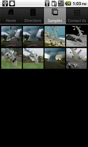 Add Frightening tornadoes to any picture! Add all the debris that goes with it. Fool your friends. Have fun making an awesome special effects scene with any picture! All the props in this app are hilarious.
