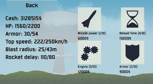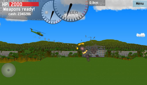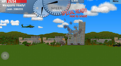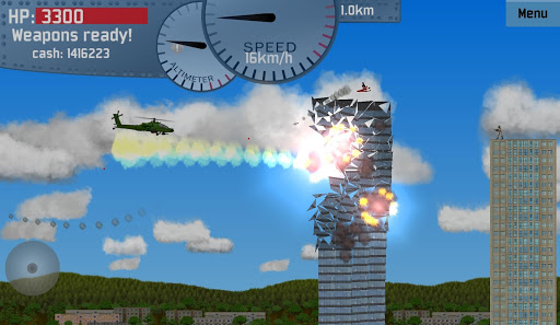 **Buildings destruction - shoot your rockets at different buildings and watch them collapse.