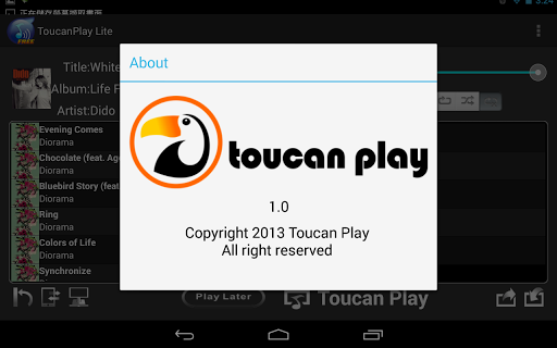 other DLNA certified music player. Toucan Play also allow to play music from local android device.