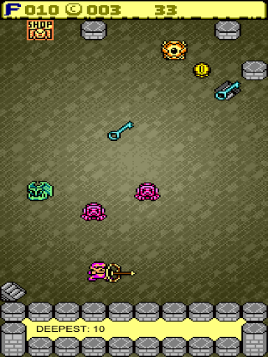 Enter the dungeon by using just a simple press! How far can you go down? What untold treasures can you pull from this deadly maze? Compete to show everyone how deep you can go!