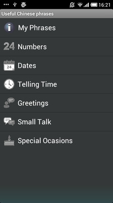 这款软件适合于去国外出差或旅游却不通其他国家语言的人。 可以在进入软件是设置母语为汉语,内含几十种外语的日常用语,如数字、问好、就餐等等,让你的出行不再头疼。
