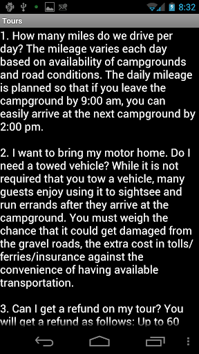 The Tours application is meant to be used by Adventure Trek's tour participants while on a tour. The Tours application will aid the tour participant by: