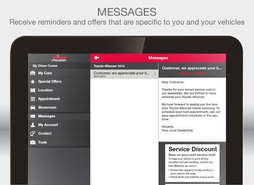 Make your vehicle ownership experience easy with the free TOYOTA OF RICHARDSON mobile app. This feature-rich app allows you to get the most out of your vehicle by helping you to maintain and organize essential car details like service history, as well as save money with mobile offers and coupons!