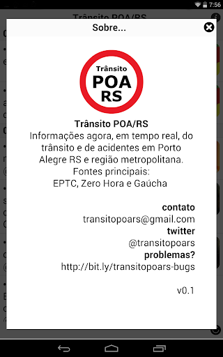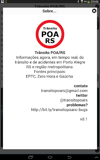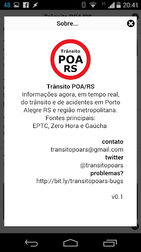 Este aplicativo usa os dados da conta @TransitoPOARS do Twitter, que dispõe das seguintes funcionalidades: