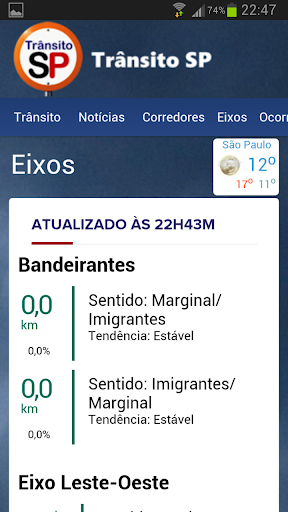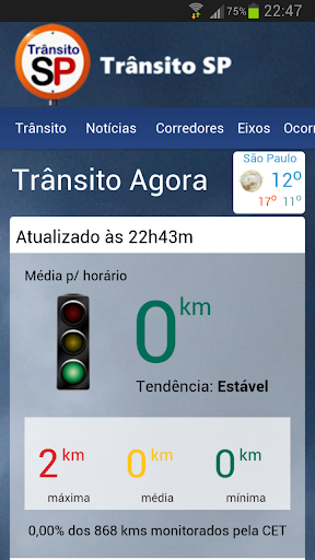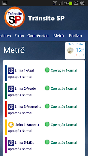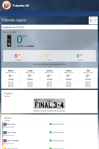 Informações sobre o trânsito e condições das linhas do Metrô e CPTM de São Paulo. Fonte CET, Metro, ViaQuatro e CPTM