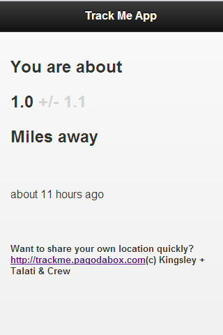 How far away are you from your loved ones ? Family or friends ? Use this app to quickly email / text or tweet your location online for others to see.