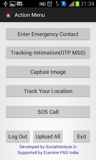 TrackU is an android app which will help women feel safe and secure wherever they move around at any hour of the day or night. This APP lets you register two of your close and trusted ones whom you would want to reach out to at times of need. Be it travelling by cabs or hired private cars you can upload the photos making it easier to track if things go wrong. The two registered people can track your movements and location in TrackU website and you can also keep them updated of your where about and routes. In times of crisis this app enables you to make SOS(Save Our Soul) messages and calls to the registered numbers so that they can be of help immediately. This app is surely going to be of extreme help to all people.