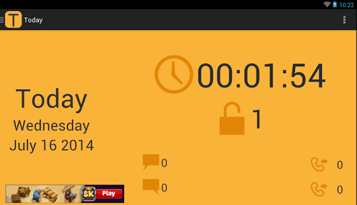 A very simple tracker for keeping records of unlocks,time spent, message in/out, phone calls in/out, with ability to view by day/month/year or custom and to set daily usage alert.