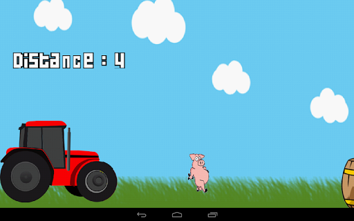 A crazy farmer is after the poor pig driving his powerful tractor!