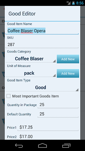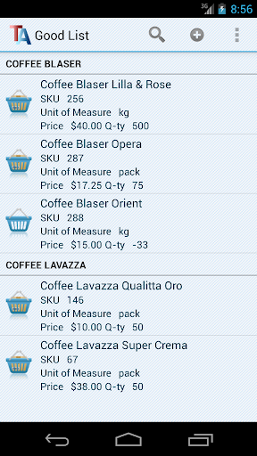 Advanced Product Search by name or by SKU or its part. You can use the camera as a barcode scanner.