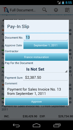 Contains all the essential business operations. Invoices, Orders, Payments. Products and services. Purchasing and sales, money incomings and expences, customers orders. Inventory rests and mutual settlements are calculated automatically. Inventory history for any time period for any product or service. Intended for use in various businesses - hairdressers, plumbers, salesmen, etc.