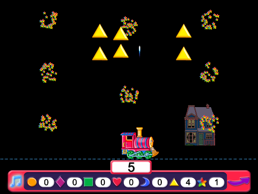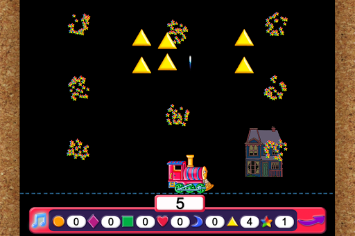 All aboard for fun! School Zone’s Train Defender game app is colorful and easy to play. Clear, cheerful audio instructions launch the fun. Little learners shoot shapes from the sky by sliding the train and tapping to fire at them before they hit the town below. Quick, those falling triangles are getting lower and moving faster. Each successful round earns new houses for the player’s town. Shape cards are shown at the end of a round to help children associate the shape with its word-name and its spelling. Take aim for the rainbow star to get a surprise reward! In this app kids get practice with identifying shapes, and their eye-hand coordination and fine motor skills get a great workout. For added challenge, the game steps it up as the player gets faster.