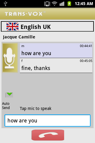 TransVox is a multilingual, Speech to Speech Translation application which allows you to speak different languages by making Voice Call Translations, TransVox Instant Messenger Translator and On Device Translator in over 20 languages.