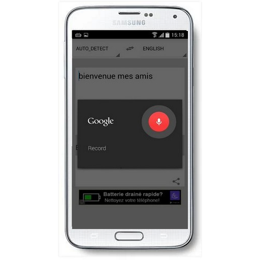 - Traduction vocale - Traduire par simplement parler de la phrase. Traduction vocale nécessite une connexion réseau.