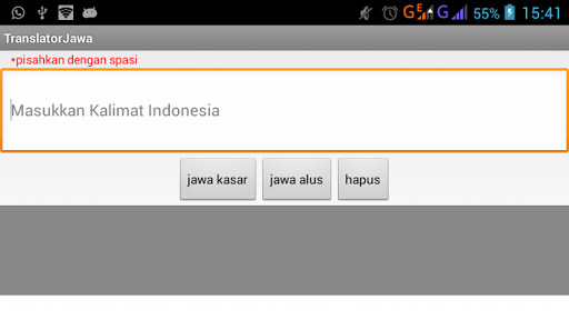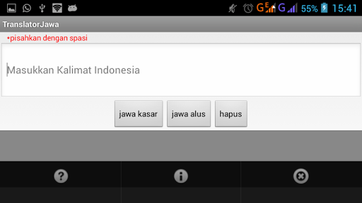 Aplikasi Translator Jawa membantu untuk menerjemahkan bahasa Indonesia ke bahasa jawa kasar (ngoko), dan jawa alus (krama inggil).
