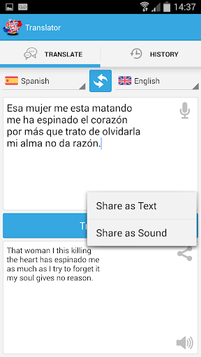 The Translator for Android helps correct pronunciation of words it is possible to hear the translated texts.