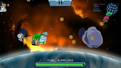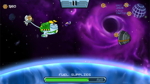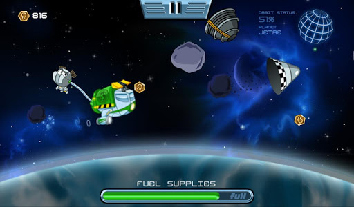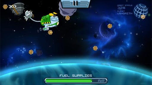 Play as Yuri and jump from planet to planet cleaning up the junk and broken satellites cluttering up the orbit. Earn credits by collecting as much junk in one orbit as possible before jumping to the next planet, or running out of fuel. Be careful to leave the functioning satellites alone. If you pick up too many of those, you'll anger the planetary inhabitants and they'll attempt to blast you from orbit.