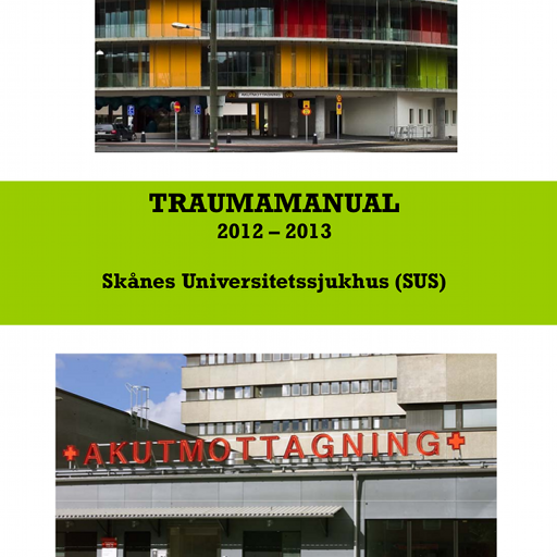 Den utgör det underlag vi arbetar efter i samband med handläggandet av truamapatienter på Skånes Universitetssjukhus. Självfallet är vissa delar lokala för SUS men torde med fördel kunna användas som stöd vid handläggning av traumapatienter vid vilket svenskt sjukhus som helst. Detta är ett skäl till att vi väljer att tillgänglig- göra manualen för dem som önskar.