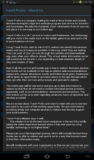 We are Travel ProGo, a new company launching out of Nova Scotia, Canada that would like to redefine the visitor experience. Our goal is to give travelers the freedom to discover the World and to engage with communities. We believe in “One World” connected through “One App.”