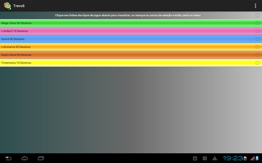 Este aplicativo é um gerador de números para os seguintes jogos de loteria do Brasil: