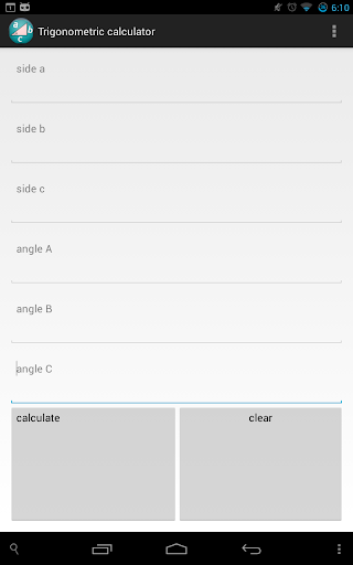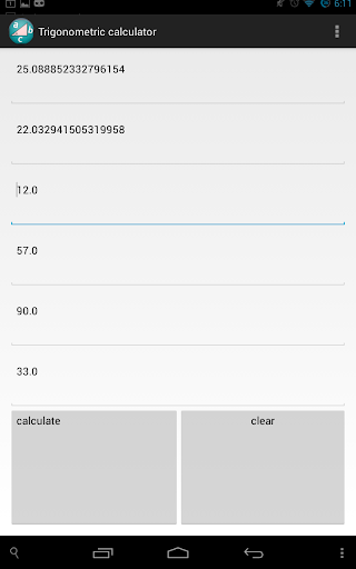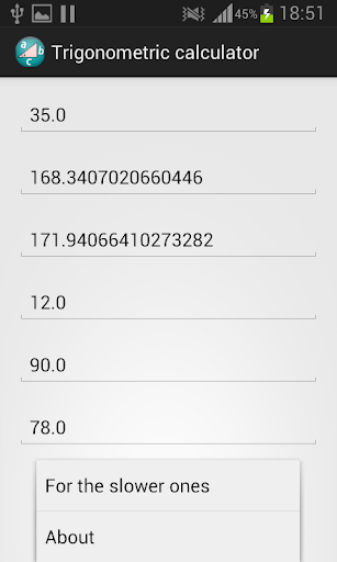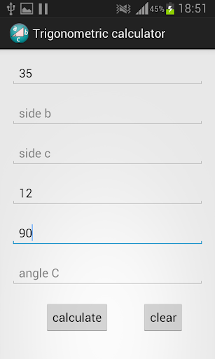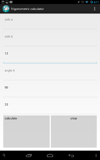 The app calculates sides and angles in rectangular triangles using goniometric functions.. It is really good cheat to school, especially for exams.