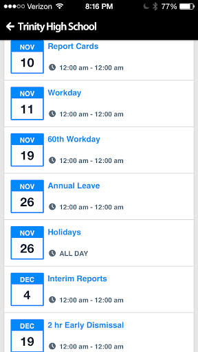 The Trinity High School App has been designed to showcase information about the school as well as schedules, lunch menus, faculty and photos.